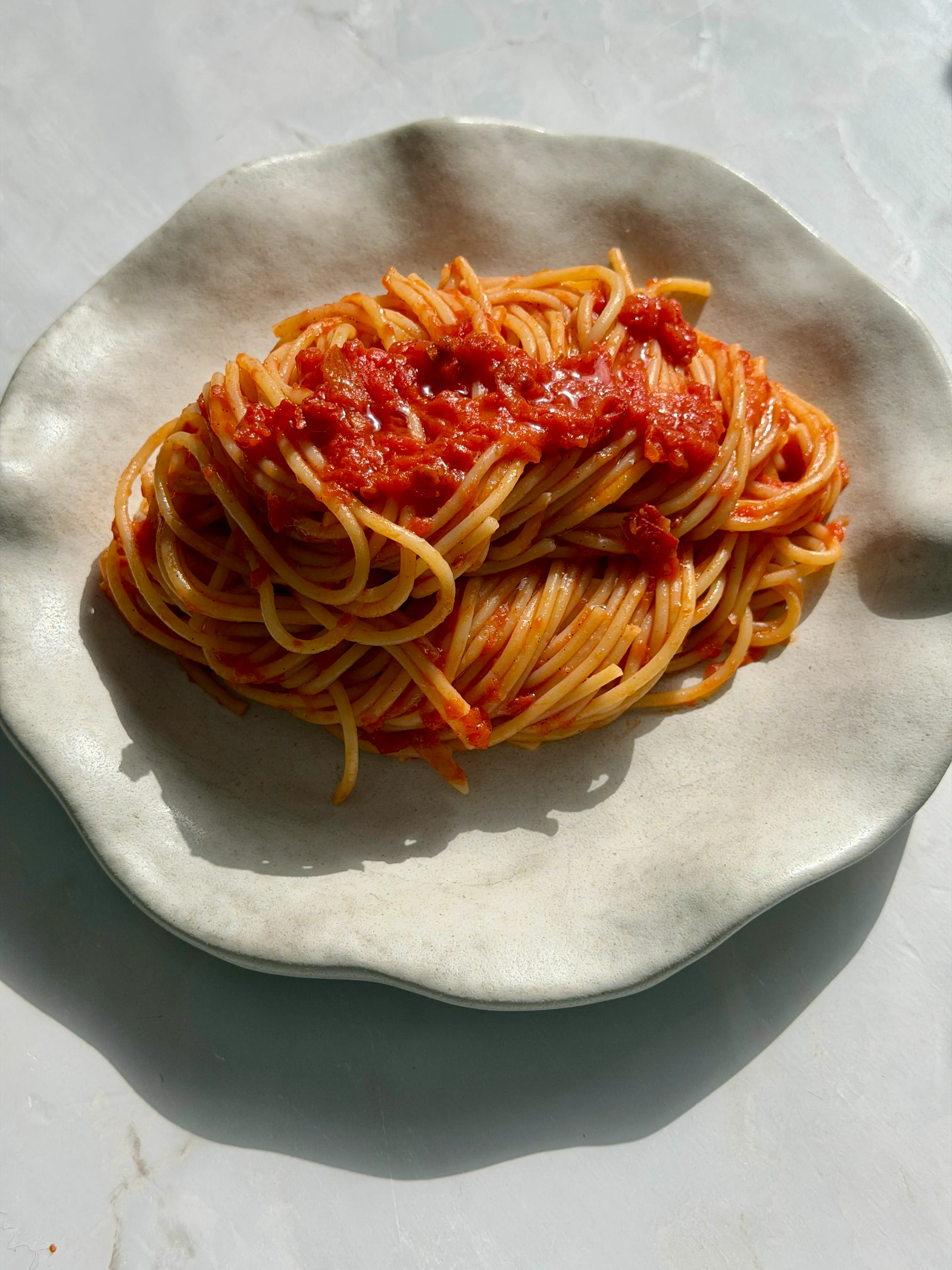 In a way, this linguine changed my life. It was the first recipe in the series to take off on social media, bringing new people and new opportunities into my life. It’s an exceptionally simple recipe that uses the same water to cook both the pasta and the vegetables, which you then use to create a velvety, carbonara-esque sauce with the cheese and egg. I’ve retested this and tweaked it since its original conception and, though I can’t promise it will change your life, I can promise it will be delicious.