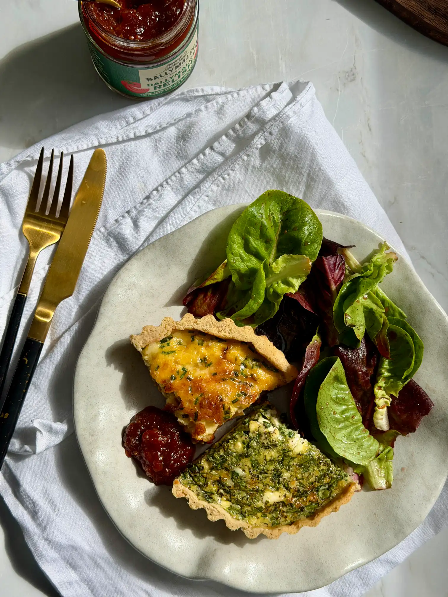 These Mini Herby Spinach & Feta Quiches are a light yet flavourful savoury bake made with buttery shortcrust pastry, a creamy egg custard and a fresh, herb-packed filling. This is a small batch bake that makes two individual 15cm quiches, ideal for cooking for one with leftovers or sharing. Inspired by spanakopita the filling combines spinach, feta and soft herbs for a bright, slightly tangy flavour, finished with a subtle hint of dried mint. Everything is baked until golden with a slight wobble in the centre for that perfect quiche texture. It’s simple, fresh and quietly elegant.